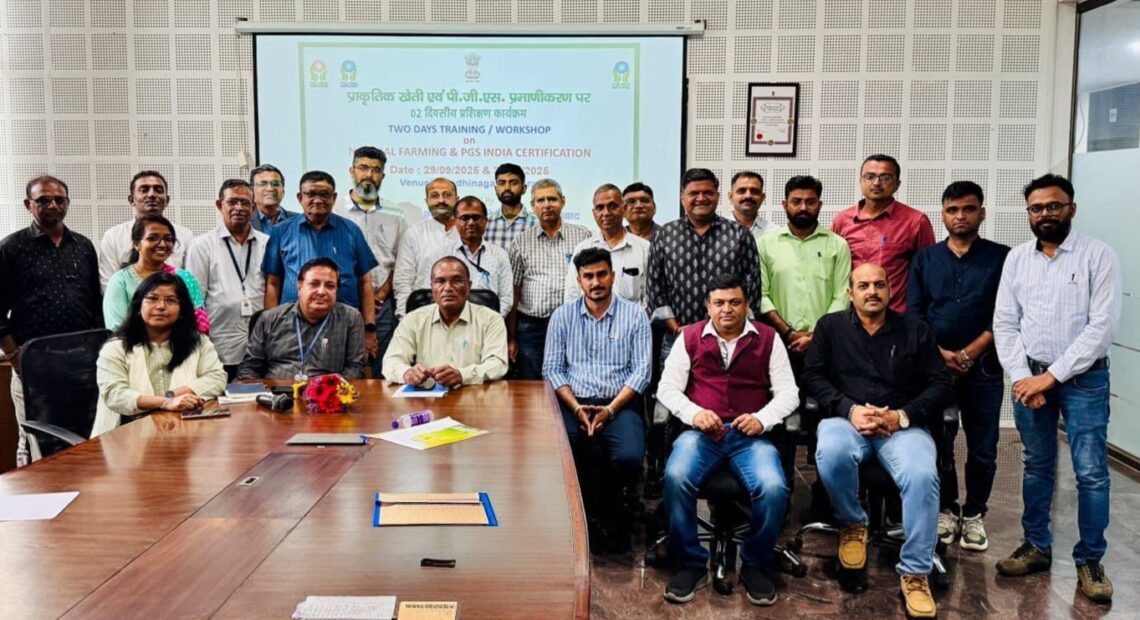 ગુજરાત ઓર્ગેનિક પ્રોડક્ટસ સર્ટિફીકેશન એજન્સી અમદાવાદ તથા નેશનલ સેન્ટર ફોર ઓર્ગેનિક એન્ડ નેચરલ ફાર્મિંગ, ગાજીયાબાદના સંયુક્ત ઉપક્રમે ગુજરાત ઇન્સ્ટીટ્યુટ ઓફ ડીઝાસ્ટર મેનેજમેન્ટ ગાંધીનગર ખાતે નેચરલ ફાર્મિંગ સર્ટિફીકેશન સિસ્ટમ વિષય અંગે બે દિવસીય તાલીમ કાર્યક્રમનું આયોજન કરવામાં આવ્યું હતું. નેચરલ ફાર્મિંગ તેમજ સજીવ ખેતી માટે પી.જી.એસ- ગ્રુપ સર્ટિફીકેશન માટે તા.૨૯ અને ૩૦ સપ્ટેમ્બર એમ બે દિવસ તાલીમ કાર્યક્રમનું આયોજન કરવામાં આવ્યું હતું.