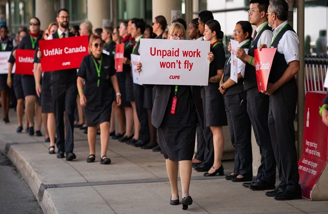 ગયા અઠવાડિયે, એર કેનેડાએ જાહેરાત કરી હતી કે ઝ્રેંઁઈ ફ્લાઇટ એટેન્ડન્ટ્સની હડતાળને કારણે એર કેનેડા અને એર કેનેડા રૂજ માટે ફ્લાઇટ્સ સ્થગિત કરવામાં આવશે. હડતાળની અસર દરરોજ લગભગ ૧૩૦,૦૦૦ ગ્રાહકો પર પડી હતી.