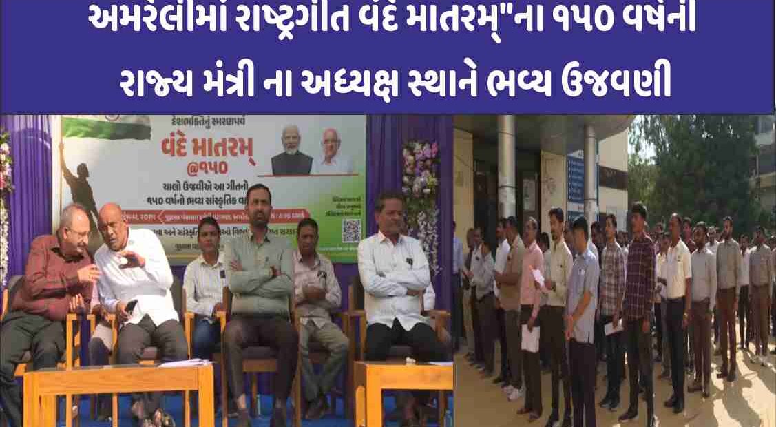 વિડિયો ગેલેરી “વંદે માતરમ્ માત્ર ગીત નથી ભારતની આત્માનો નાદ છે” : રાજ્યમંત્રી કૌશિકભાઈ વેકરીયા Tags: Post navigation Previous Previous post: રાજ્યમાં આજથી ” ઠંડી રાજ..” આજે રાતથી વધશે ઠંડી, તાપમાનનો પારો 2-3 ડિગ્રી ગગડશેNext Next post: દુધાતે સુધરી જવાની ચીમકી બાબતે ધારાસભ્ય કસવાળાએ આપી પ્રતિક્રિયા Related Posts CM ભૂપેન્દ્ર પટેલે અમદાવાદમાં આઝાદી કી યાદે મ્યુઝીયમનું લોકાર્પણ કર્યું અમરેલીની પ્રજ્ઞા સ્માર્ટ સ્કુલમાં શિક્ષક દિનની ઉજવણી કરવામાં આવી બીપરજોય વાવાઝોડાને લઇ સિંહોની સલામતી માટે વન વિભાગનો સ્ટાફ હાઈએલર્ટ પર