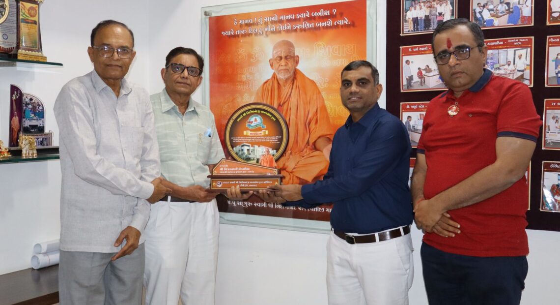 શ્રી વિજયભાઈ ડોબરિયા અને મીટલભાઈ ખેતાણી નું ટ્રસ્ટીશ્રી-નટુભાઈ રાજપરા અને ટ્રસ્ટીશ્રી-બી.એલ. રાજપરા દ્વારા ‘મોમેન્ટો’ અર્પણ કરીને સન્માનિત ક૨વામાં આવેલ.