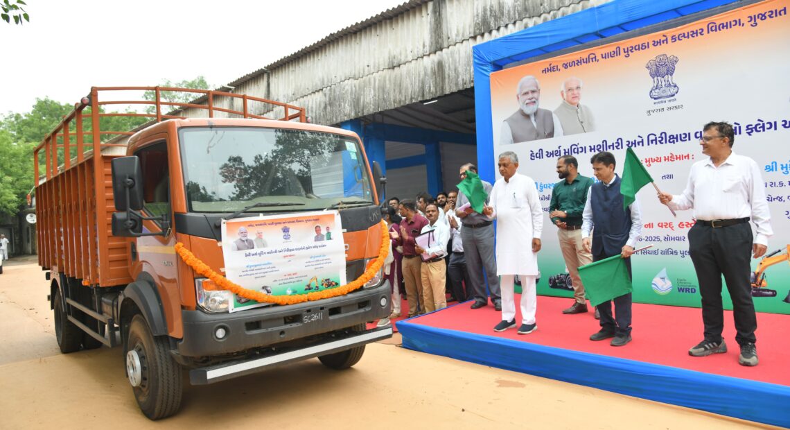 રાજ્યમાં ડેમ, કેનાલ, તળાવના નિર્માણ-મરામત તેમજ ‘કેચ ધ રેઇન’-સુજલામ સુફલામ્ જળ અભિયાન ૨.૦ અંતર્ગત રૂ. ૧૮૬૧.૪૨ લાખના ૧૨૨ હેવી અર્થ મુવિંગ મશિનરી તથા નિરીક્ષણ વાહનોનું ગાંધીનગર ખાતેથી જળ સંપત્તિ અને પાણી પુરવઠા મંત્રી શ્રી કુંવરજીભાઈ બાવળીયાના હસ્તે ફ્લેગ ઓફ આપી પ્રસ્થાન કરાવ્યું હતું.