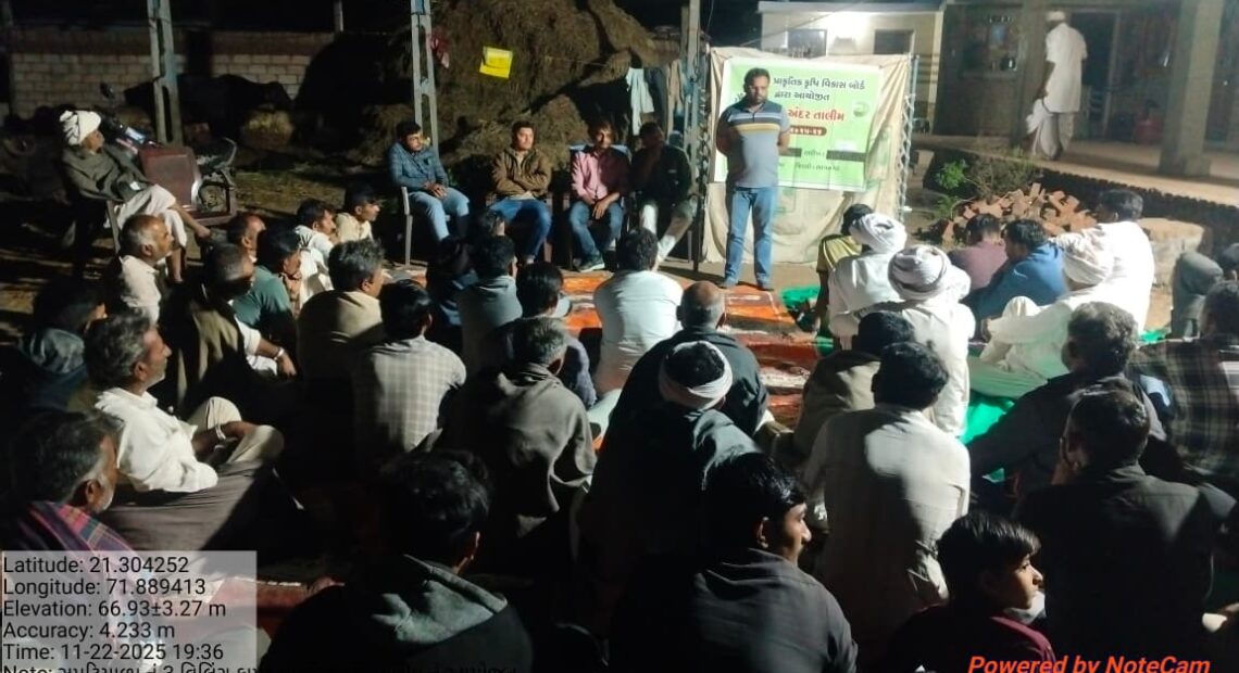 આત્મા દ્વારા મહુવા તાલુકાના દુધાણા ક્લસ્ટરના સમઢિયાળા નં-૩ ખાતે વિલિંગ ફાર્મરની તાલીમ યોજાઇ